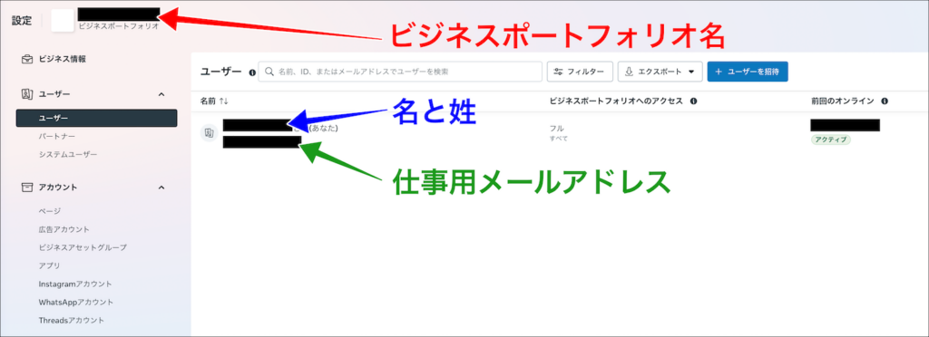 以下、この画像をもとに「ビジネスポートフォリオ・Facebookページ・広告アカウント」をそれぞれ簡単に解説します。